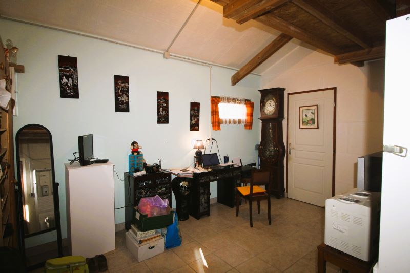 Maison (84 m2) : entrée sur séjour (45 m2), chambre (9 m2), salle d’eau et WC (6 m2),chambre (12 m2), chaufferie (9 m2), chambre en mezzanine (16 m2).