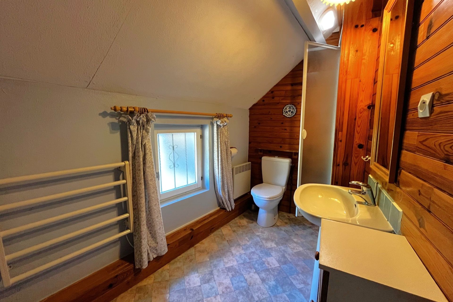 Chauffage par convecteur électrique, chaudière à fioul et poêles à bois. Double vitrage. Assainissement individuel.