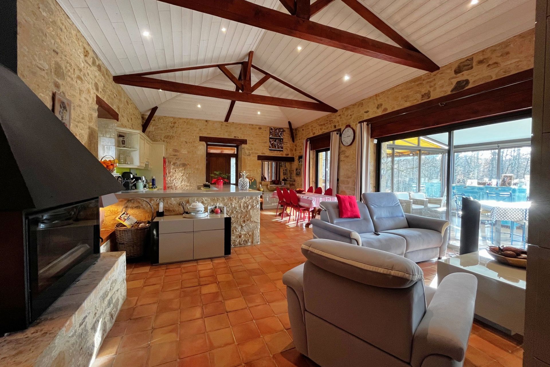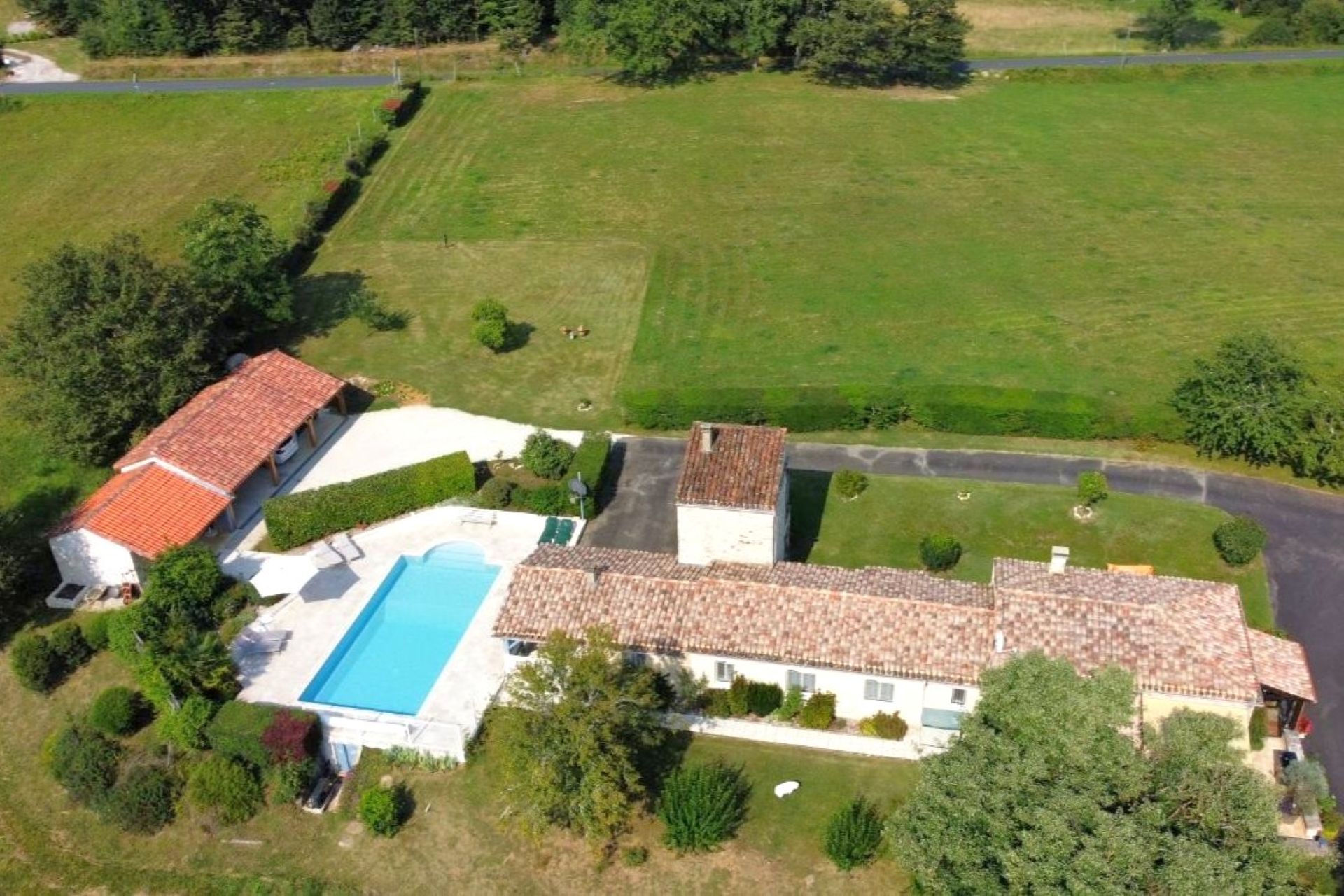 Très belle propriété de plain pied, avec un belle piscine, nichée au milieu des champs. A 10 minutes d’un charmant village.