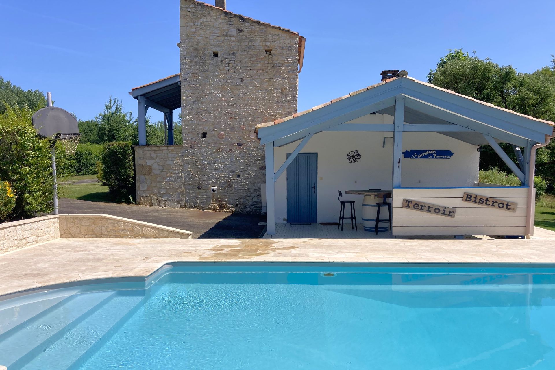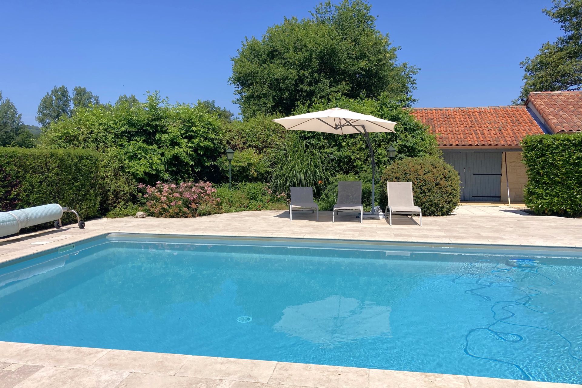 Belle piscine de 10×5 m avec liner et pompe à chaleur de 2022.