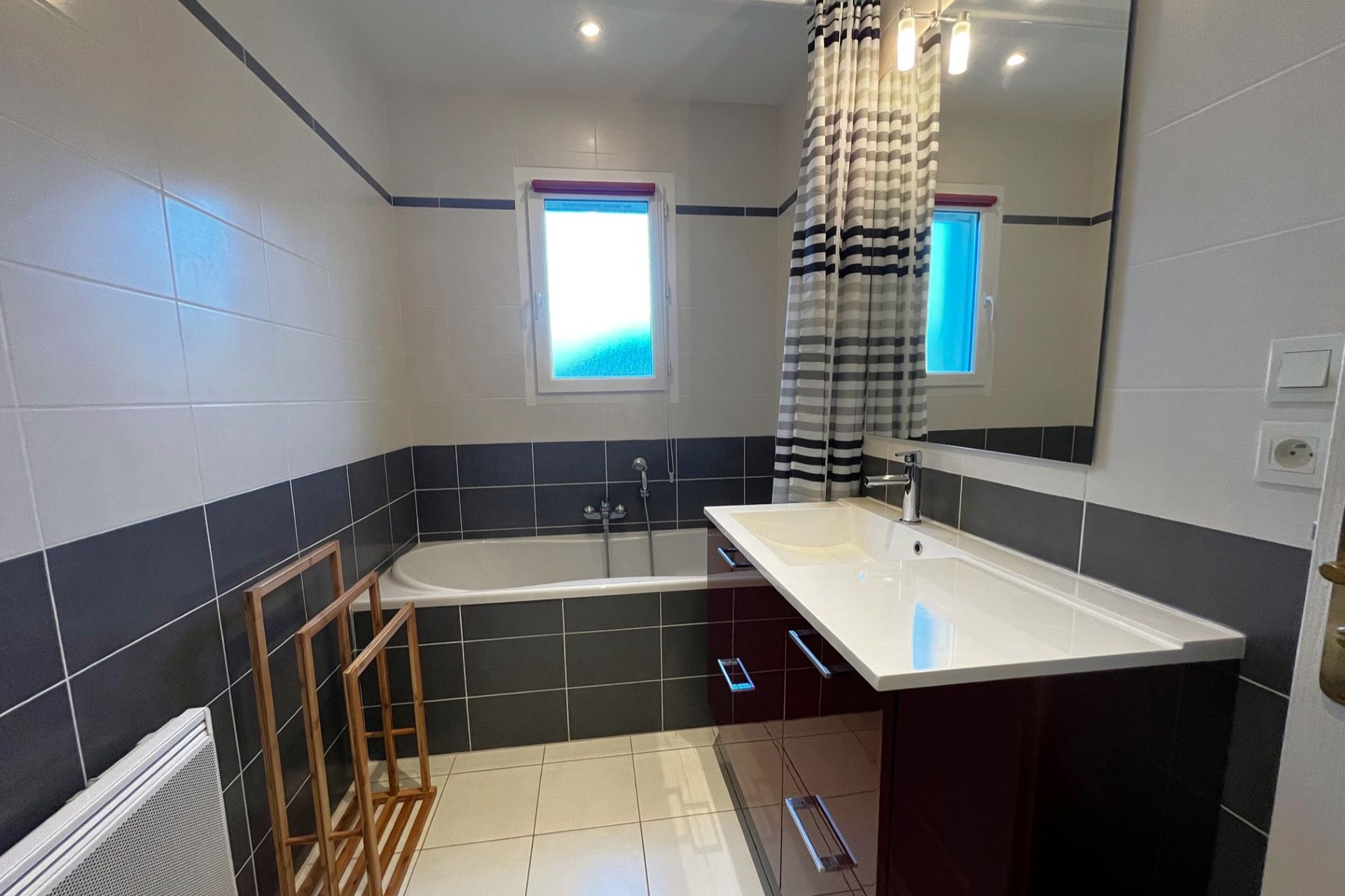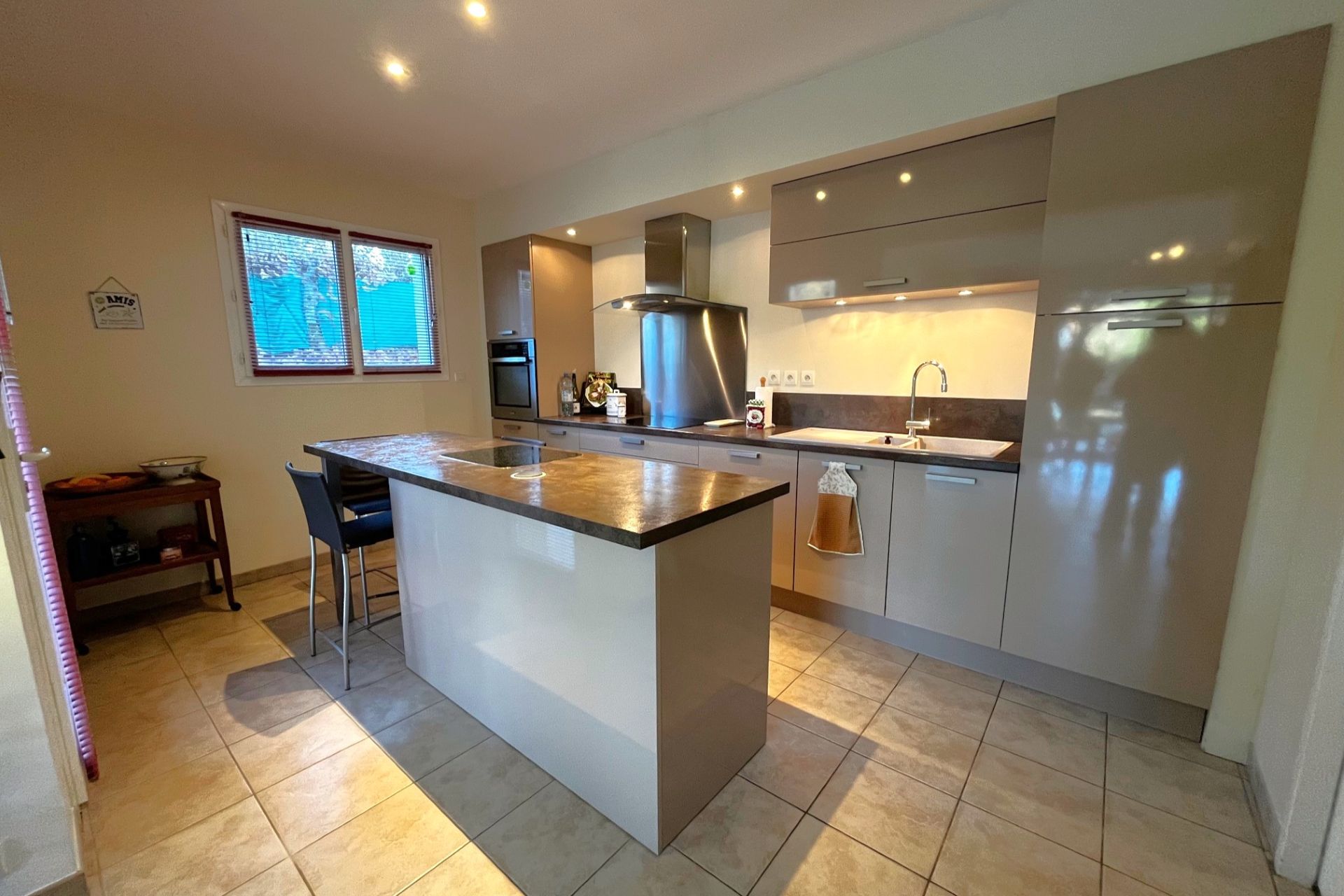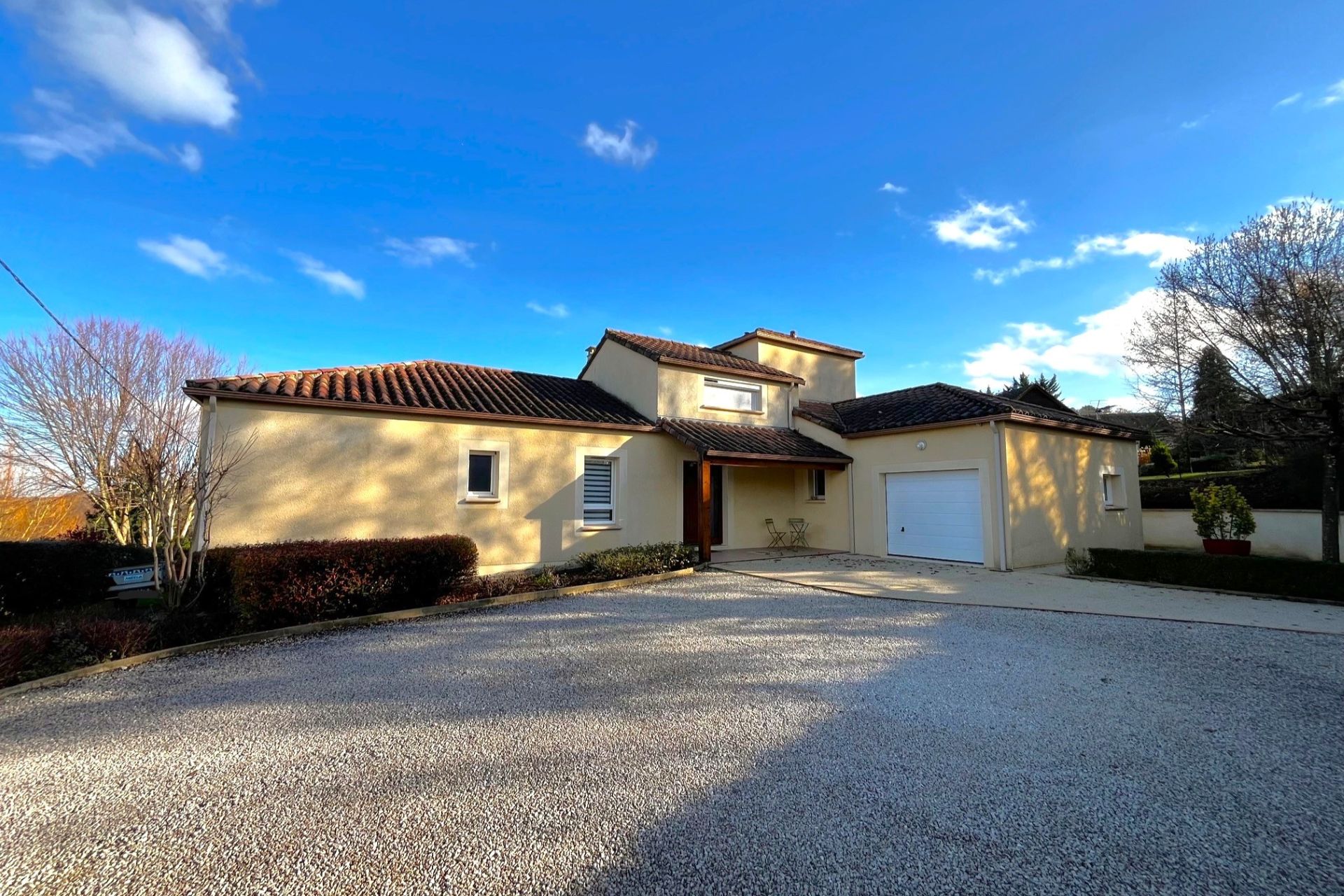 Maison contemporaine (2010), très lumineuse et confortable. Au calme, sur les hauteurs d’un village avec commodités.